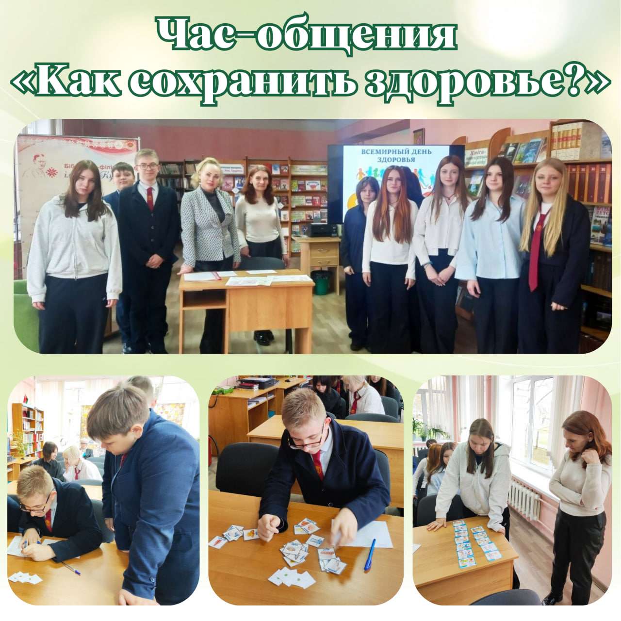 Всемирный день здоровья — это всеобщий праздник всех людей, придерживающихся основ здорового образа жизни. В рамках этого события в библиотеке- филиале №9 им. Я. Купалы состоялся час-общения «Как сохранить здоровье?» для учащихся 7 «Д» класса ГУО «Могилевская городская гимназия №1». Ребята получили много полезной и нужной информации о правильном питании, о необходимости занятий спортом и искоренения вредных привычек. Мероприятие прошло в форме состязательной игры, где участники смогли проявить свои знания и практические умения по здоровому образу жизни. В мероприятии приняла участие сотрудник по информационному обеспечению УЗ «Могилевский зональный центр гигиены и эпидемиологии» Ковкова Ирина Николаевна.