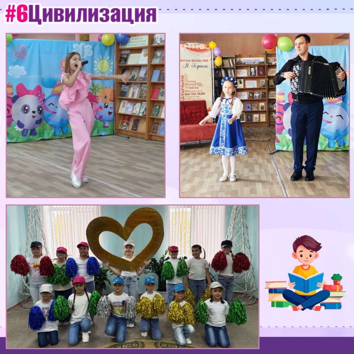 Любимые герои сказок оставили свои места на книжных полках и заглянули в гости на праздник, чтобы вместе с детьми повеселиться, пообщаться и поиграть. Юные артисты ГУО «Могилёвская детская школа искусств №7»; ГУО «Могилёвская детская школа искусств №2» и творческого коллектива «Огоньки» под руководством Бельской Татьяны Владимировны ДК филиала «БелАз» им. С.М. Кирова не только радовали участников своим творчеством, но и заряжали позитивными эмоциями, создавая атмосферу праздничного настроения.