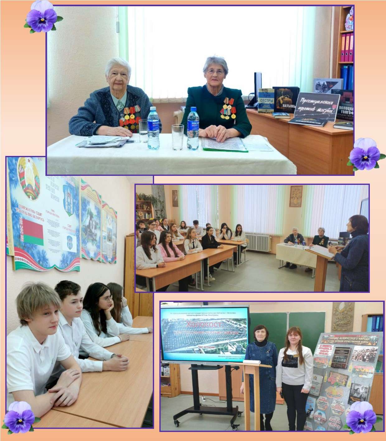 23 и 24 января был проведён урок истории «Преступление против жизни», который посетили ученики 8-х классов ГУО «Средняя школа №7 г. Могилёва» и учащиеся УО «Могилёвский государственный технологический колледж». На мероприятии присутствовали представители общественной организации «Могилёвская ассоциация малолетних узников фашистской неволи», которые поделились с участниками мероприятия своими воспоминаниями.