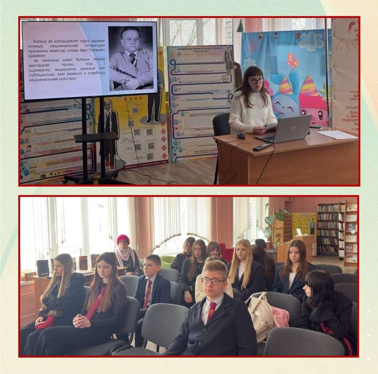 Падчас мерапрыемства юнакі і дзяўчаты з 7 «Д» класа ДУА «Магілёўская гарадская гімназія №1» пазнаёміліся з біяграфіяй Івана Пятровіча, даведаліся аб тым, што народны пісьменнік Беларусі адносіцца да пакалення пісьменнікаў, чыя маладосць была абпалена вайной. Магчыма, з гэтай прычыны большасць яго твораў звязана з падзеямі Вялікай Айчыннай вайны, але пісьменнік звяртаецца і да гісторыка-рэвалюцыйнай тэматыкі, да паўсядзённых праблем нядаўняга мінулага і сучаснасці. Акрамя гэтага, дзецьмі былі прагледжаны відэа пра Івана Шамякіна, у якіх больш падрабязна расказваецца пра яго сям’ю, вучобу, гады службы ў арміі.